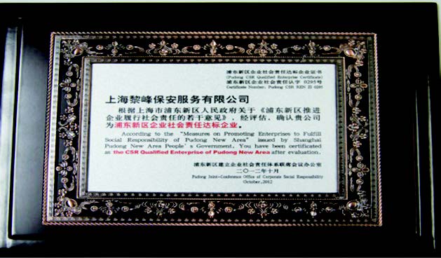 2012年 成為上海市浦東新區(qū)保安協(xié)會(huì)副會(huì)長(zhǎng)單位